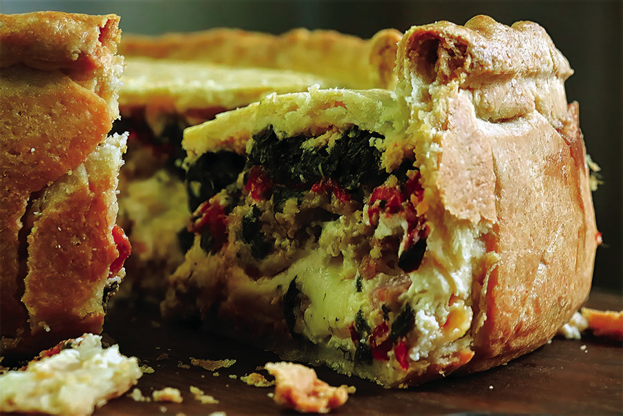 This dish is a labor of love, but you can simplify it by omitting some extras. Start with a crust of flour, butter and egg, then fill it with ricotta, cured meats, spinach and cheese. As it bakes, the savory aromas will fill your kitchen.