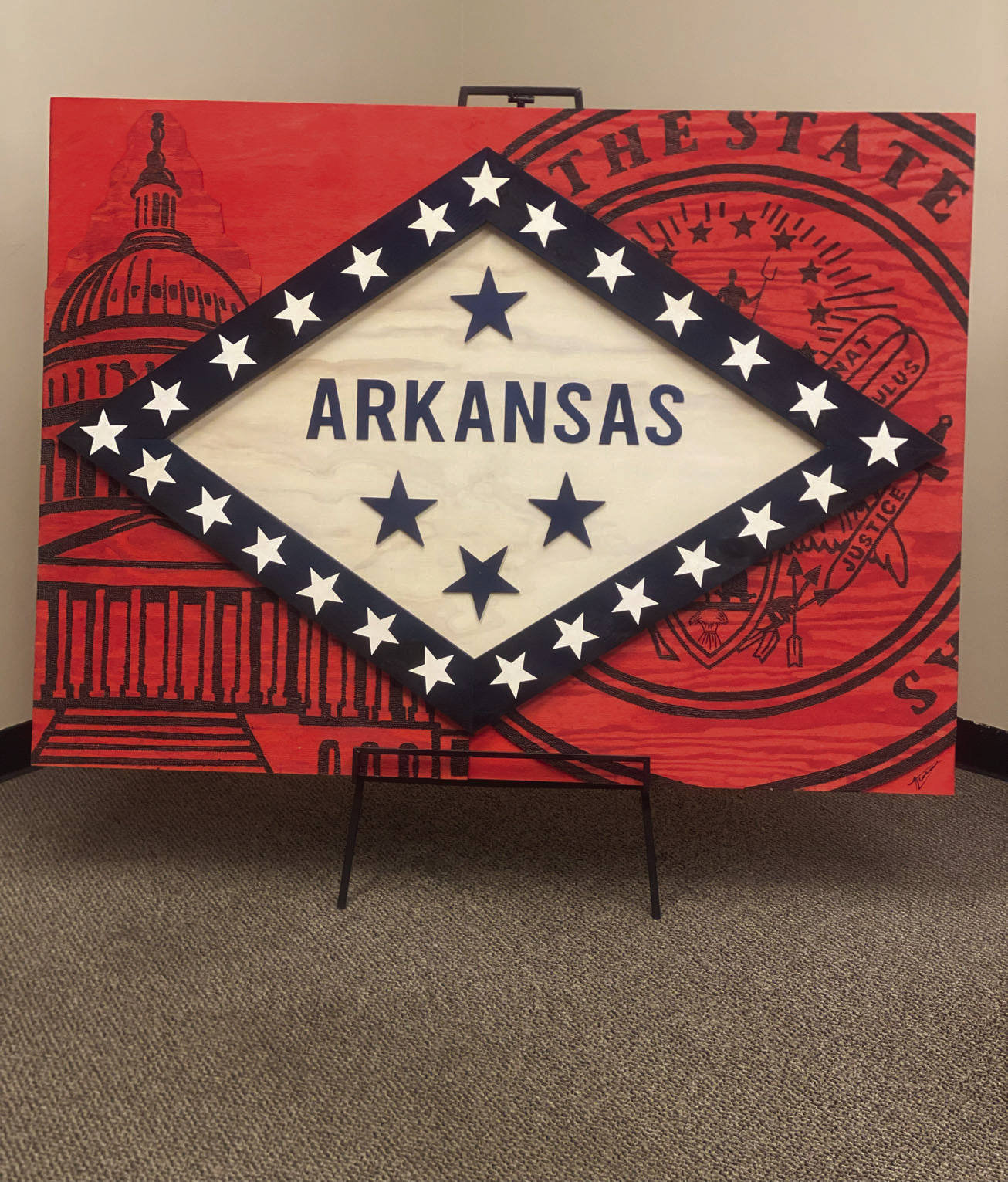 Congratulations are due to Tre Lambert! Tre achieved 1st place at the Arkansas Beta Convention in Hot Springs this January for his innovative Arkansas piece in the woodwork category. He subsequently competed at the Beta National Convention in Orlando, Florida in June, where he earned an impressive 8th place nationally. Tre’s artwork was showcased at the Calhoun County Courthouse on July 7th, and a photo was shared online featuring him with his award-winning piece. A month later, a gentleman visited the courthouse and expressed interest in viewing the artwork in person. He was so impressed that he decided to purchase it immediately for his office. Tre is the 16-year-old son of Syl and Lena Lambert and is currently a junior at Hampton High School. Once again, congratulations to Tre Lambert!