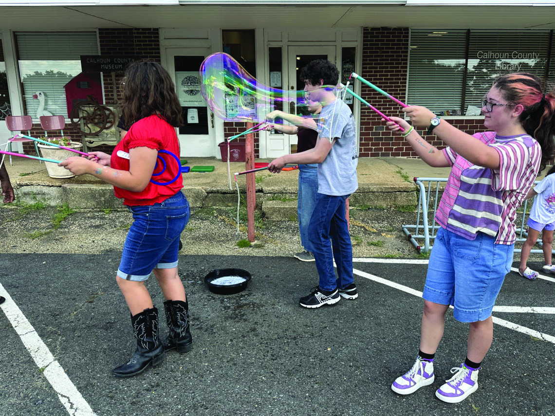 Our last two events of the 2025 Summer Reading Program were both huge hits. On Tuesday night, Dr. Tim Schroeder from the SAU Chemistry Department joined us for a fantastic showcase of some chemistry experiments. Attendees learned about the process by which nitric acid dissolves pennies, how to pour carbon dioxide gas, and the importance of the phrase “I don’t know” as we tried to decide which balloons were full of hydrogen and which of helium. The following day, a performer known as Big Poppa Bubble joined us outside the library for a wild, soapy time that involved some absolutely giant bubbles, little tiny bubbles, and plenty of medium bubbles. Our Summer Reading participants ranged in age from 0 to 18, and they read for over 500 hours total over a four-week period. We could not possibly be any prouder of them all for their efforts. Yay Readers!