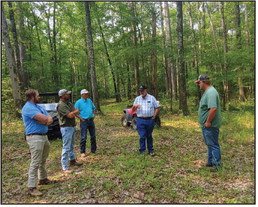 On a timberland tour, Keith notes tree varieties and conservation strategies of water bars and fire breaks.