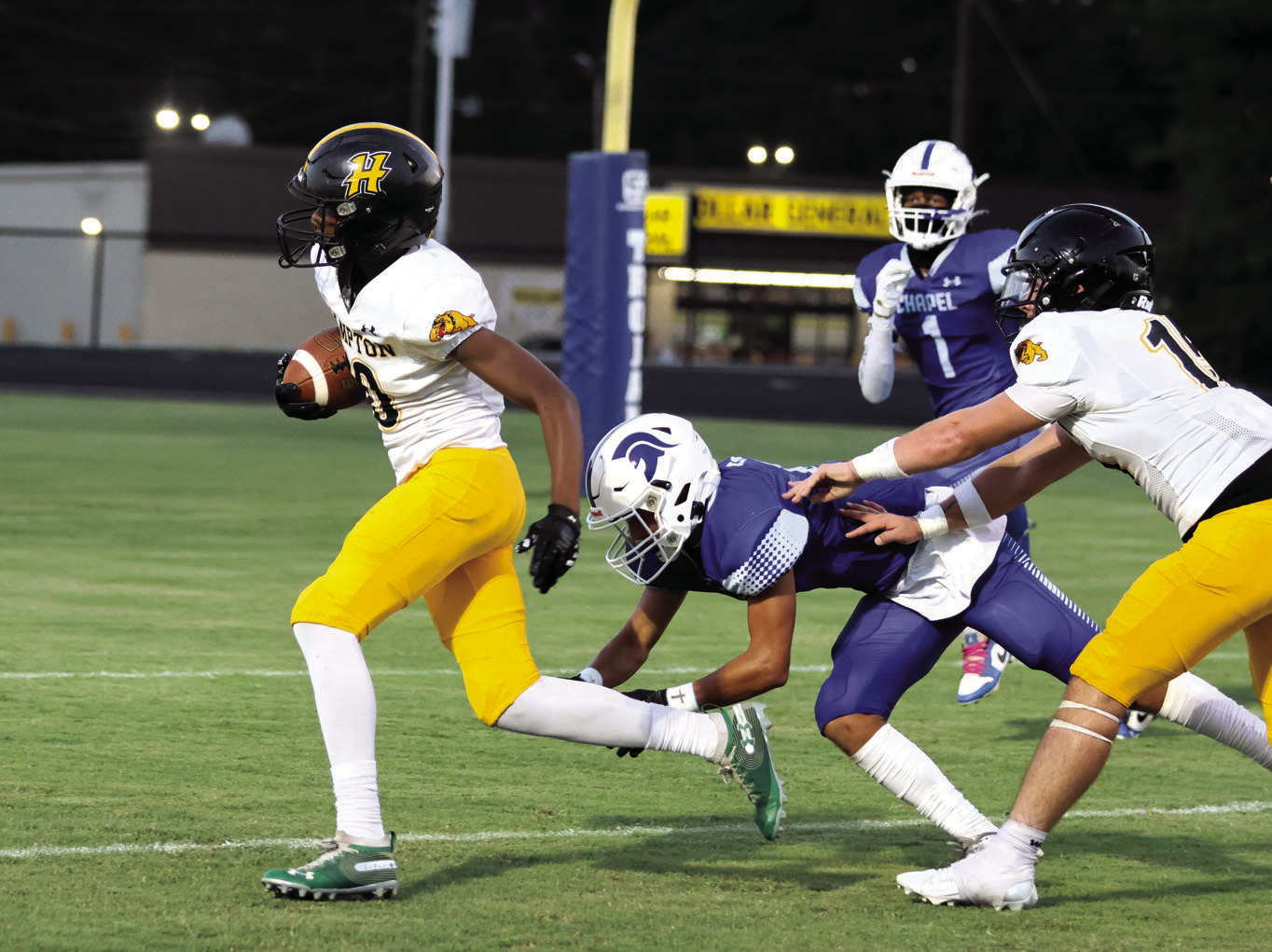 The Hampton football team scored well against both the Junior and Senior high teams.